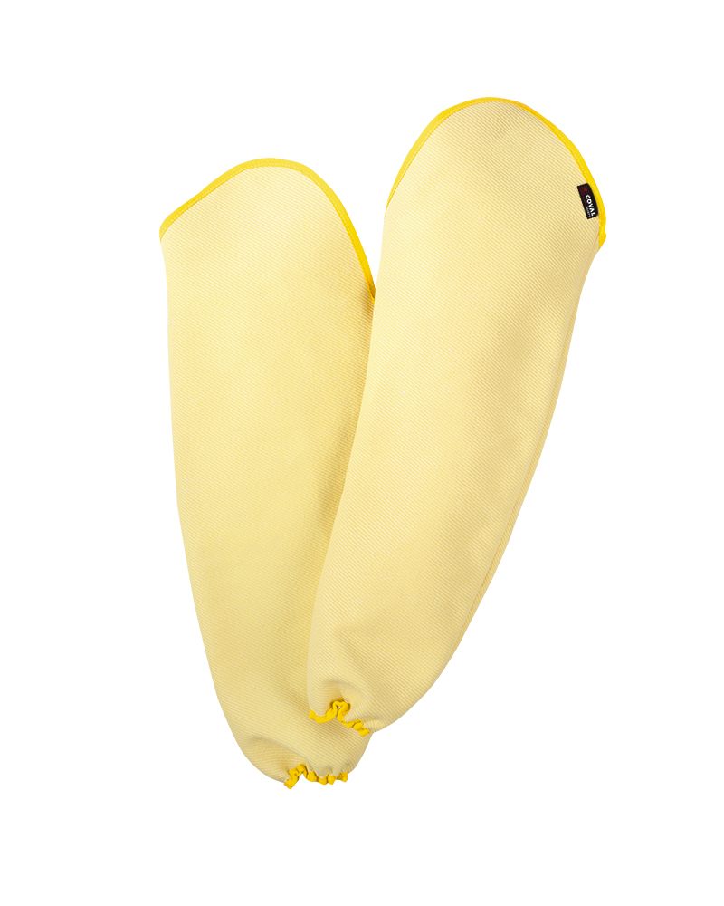 Manichette antitaglio in tessuto di fibra aramidica e foderate in maglia cotone.