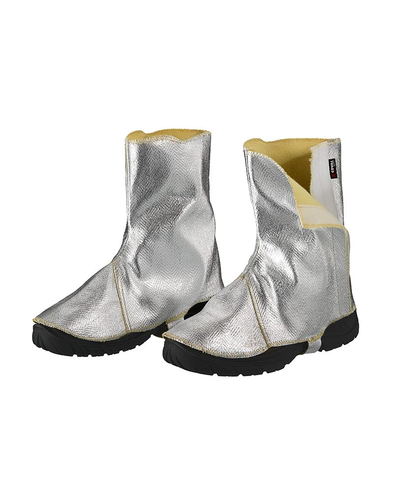 Aluminized aramid gaiters with lateral Velcro closure and fastener under the boot.