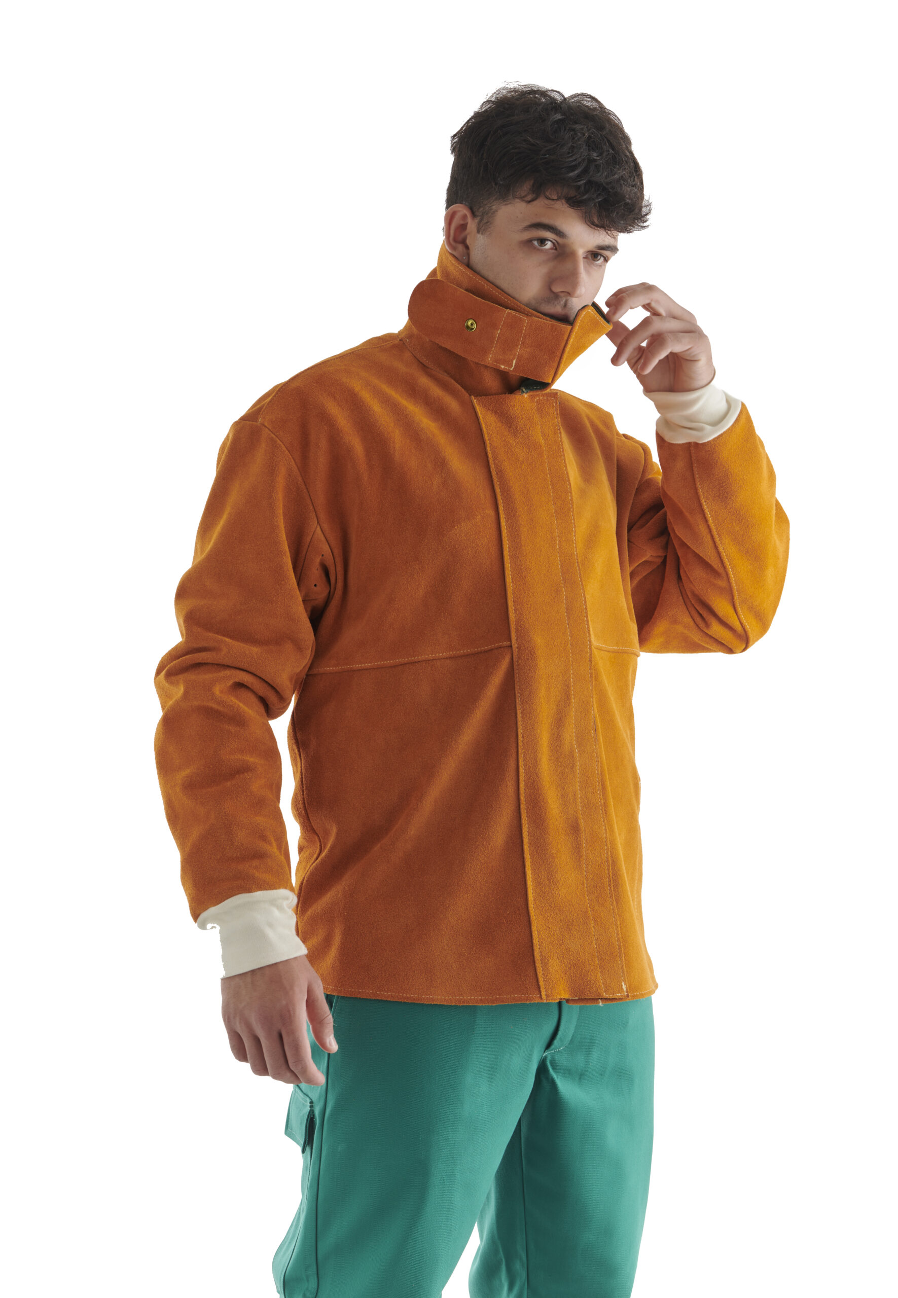 The split leather heat-resistant jacket with central Velcro closure and press studs is an essential garment for those working in the welding industry.