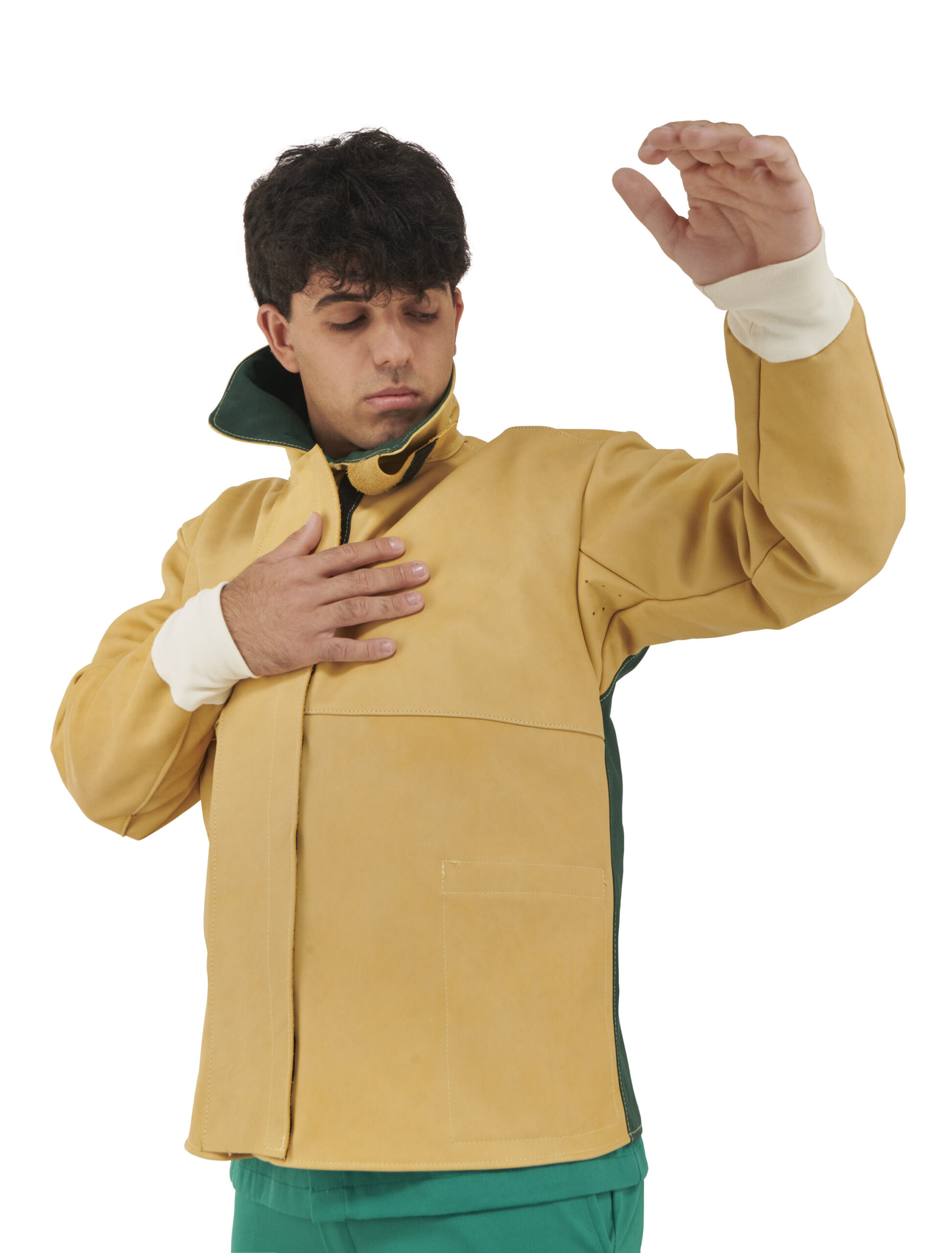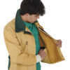 La veste de soudage V3FGPROSI est fabriquée en cuir pleine fleur jaune moutarde, un matériau de qualité supérieure qui garantit une protection efficace contre la chaleur, les projections et les étincelles générées lors des travaux les plus exigeants.
