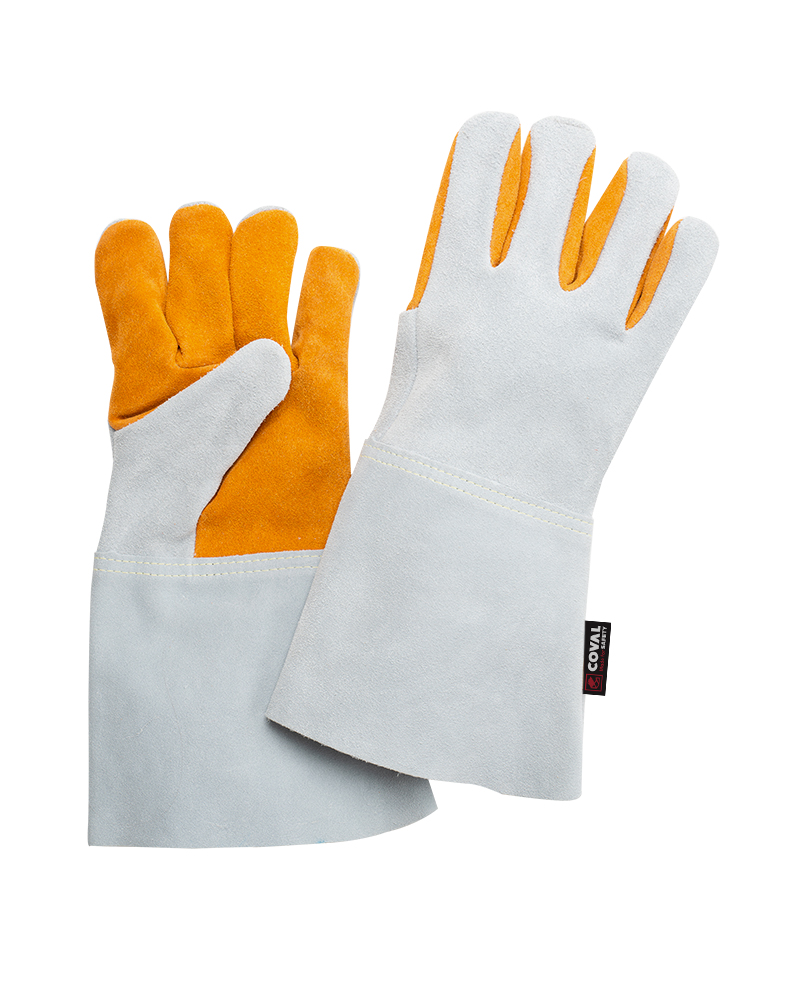 Guanti da saldatura in crosta termica e dorso in crosta naturale. Palmo e dita rinforzati interamente in panno di lanaManichetta in crosta naturale.